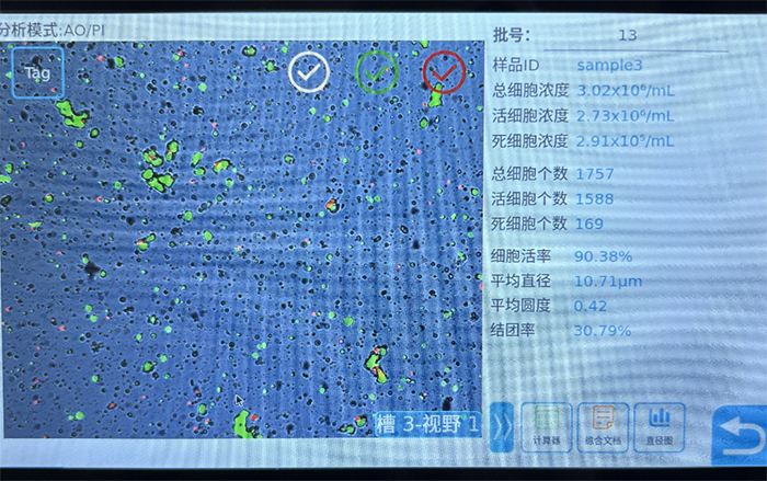 总细胞浓度3.02×10⁶/mL,活细胞浓度 2.73×10⁶/mL(活细胞占比超 9 成)