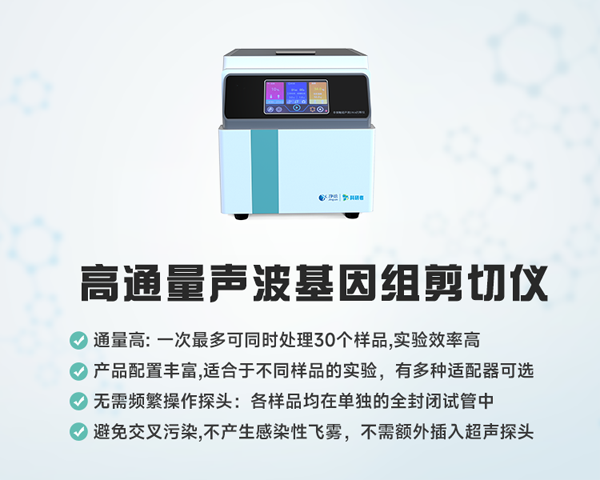 在诸如染色质免疫共沉淀测序、Hi-C等研究三维基因组和特定蛋白-DNA互作的用中,对DNA片段的长度和均一性要求苛刻。净信打断仪提供的随机的剪切,能有效暴露真实的蛋白结合位点或染色质交互断裂点,是揭示基因表达调控和基因组三维结构奥秘的不可或缺的工具。