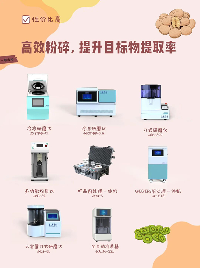 样品研磨是农残提取的基础,净信多款研磨仪针对不同农产品基质、检测需求设计,实现样品快速、充分粉碎,大幅提升农药提取率,为后续检测筑牢基础: