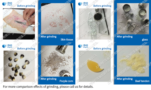 By connecting to the innovative product of Shanghai Jingxin Technology®, the air refrigeration instrument, low-temperature operation can be realized, and it has the functions of dry grinding and wet grinding at the same time. It meets the application of heat-sensitive materials and biological fields, and is suitable for plant, animal, bacterial and yeast samples. Designed by DIN method, low noise, easy to use, stable performance, the grinding process of samples is always at low temperature, so it can be satisfied with the application of heat-sensitive materials and biological fields, and can be used for soft textiles, PCB boards, paper, soil, etc. And medium-hard samples for regular crushing