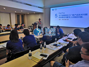 净信研发部工程师沈工也在会上就销售部及工厂新产品技术问题以及售后专人对接问题进行了讲解和讨论。公司在研发新产品的同时也非常重视产品使用当中所出现的技术问题和售后问题。净信目前在全国拥有十几个办事处,对于售后这一块,我们也是非常有信心的。能够及时有效的帮客户解决问题。