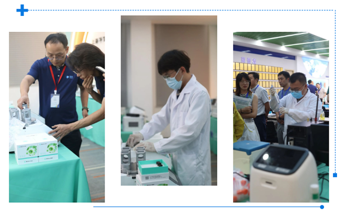 代理商们分组参观,在技术人员的操作下,体验了“样本剪碎→酶体系配置→恒温酶解→细胞过滤→活性检测”的全流程操作。实操过程中,技术团队针对不同区域客户的需求特点,提供定制化建议:比如来不及立即制备的样本,推荐“高效组织保存液”保存后,再进行实验;针对“批量样本处理”需求,搭配批量解离单细胞悬液制备仪进行。贴心准备了小规格试用装,简洁的操作说明书,免费试用无忧。