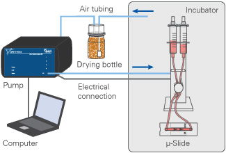 o流体装置可以被放进培养箱,而ibidi泵在培养箱外